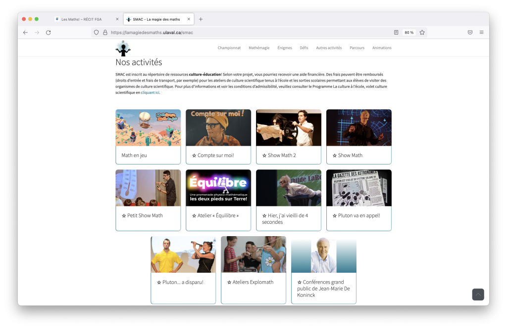 Connaissez-vous les sites SMAC (Sciences et Maths en Action) et La magie des maths de l’Université Laval ?